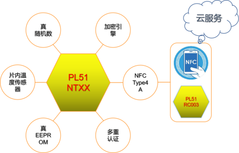 PL51NTXX將溫度感知、模擬信號鏈、NFC收發(fā)、電源管理、MCU、加密引擎、EEPROM存儲器等實(shí)現(xiàn)了單片集成。系統(tǒng)無需外圍元件,支持有源和無源兩種應(yīng)用,可與手機(jī)APP進(jìn)行數(shù)據(jù)交互,并可達(dá)到IC卡級的加密強(qiáng)度等。